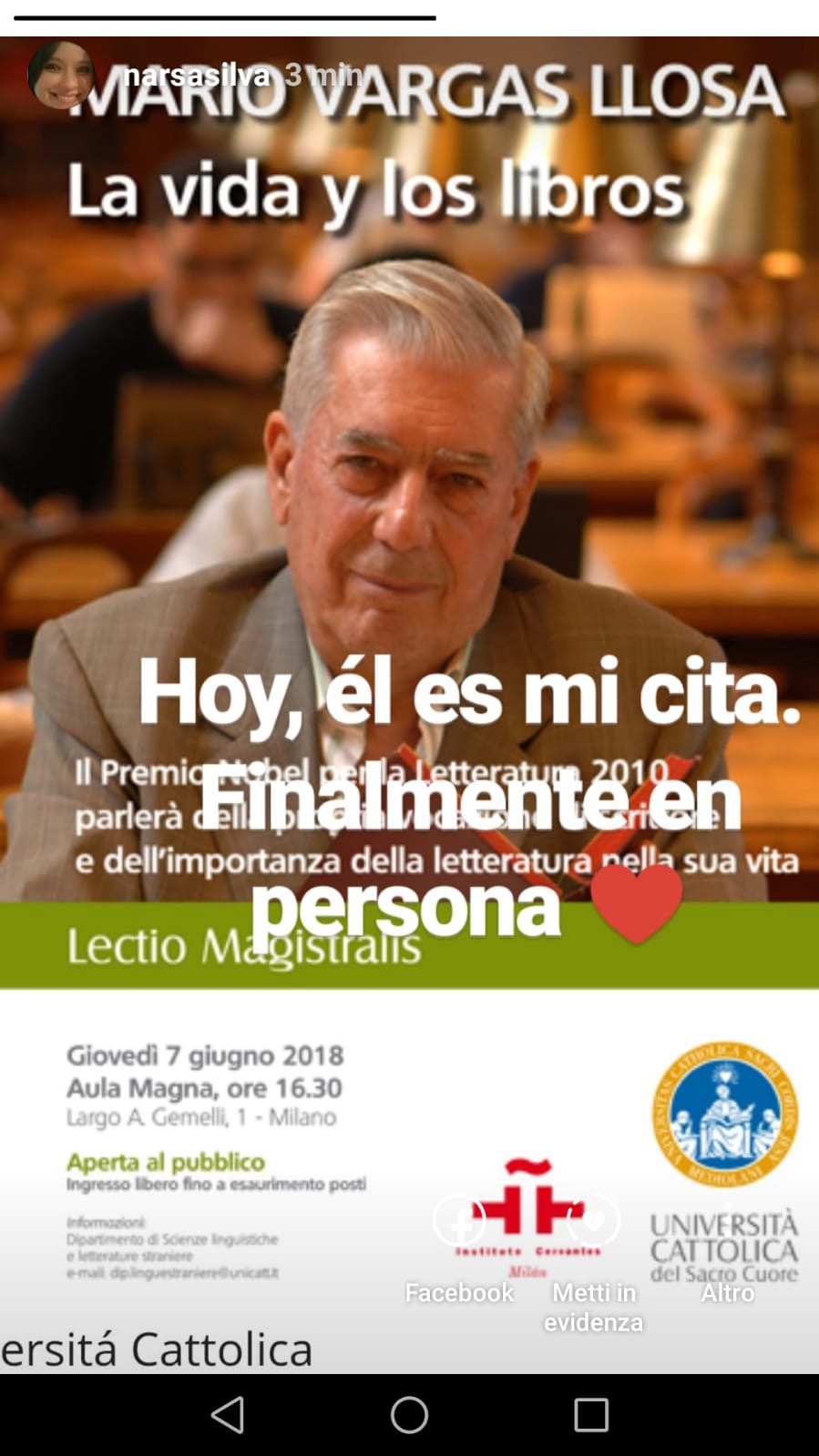 En memoria de Mario Vargas Llosa, publicamos aquí algunas fotos tomadas durante nuestra participación en el evento organizado por la Universidad Católica de Milán.